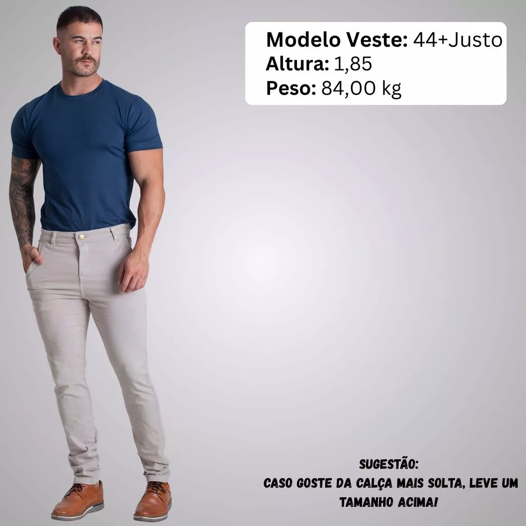 Modelo da foto veste 44 tem 1,85 de altura, pesa 84 kg porte atlético.